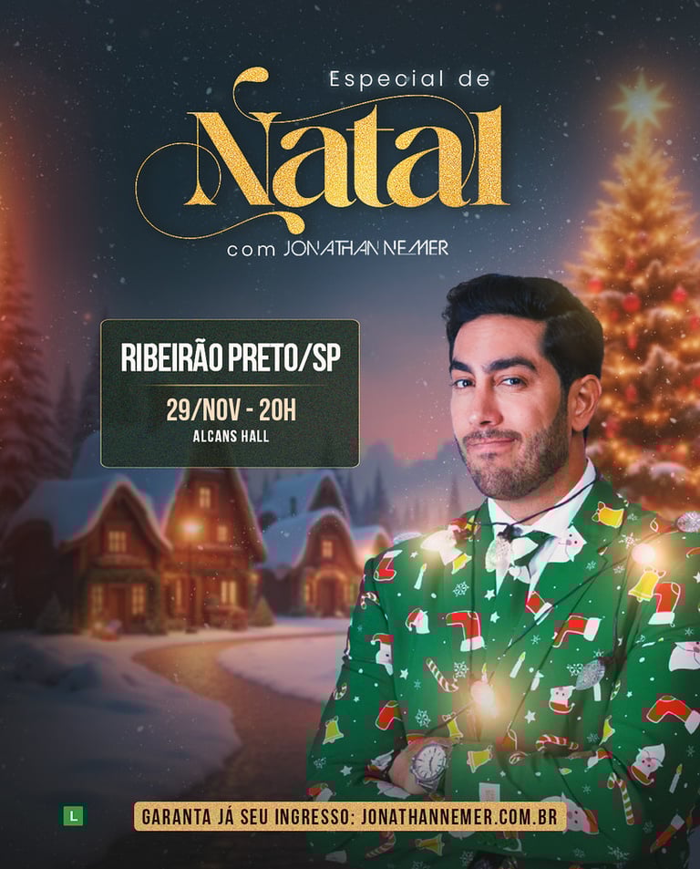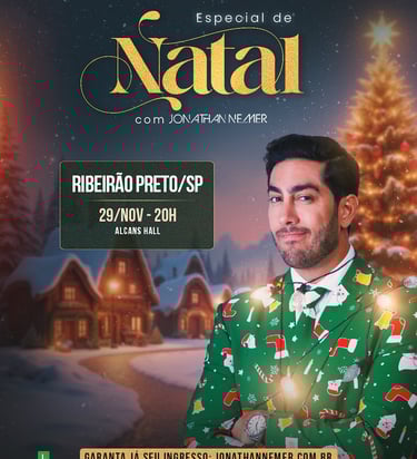 Na internet o Jonathan Nemer já conta com mais de 5 Bilhões de Visualizações, e nos palcos esse sucesso não tem sido diferente. Compre seu ingresso e leve toda a família para o Novo Especial de Natal com Jonathan Nemer. É diversão garantida!