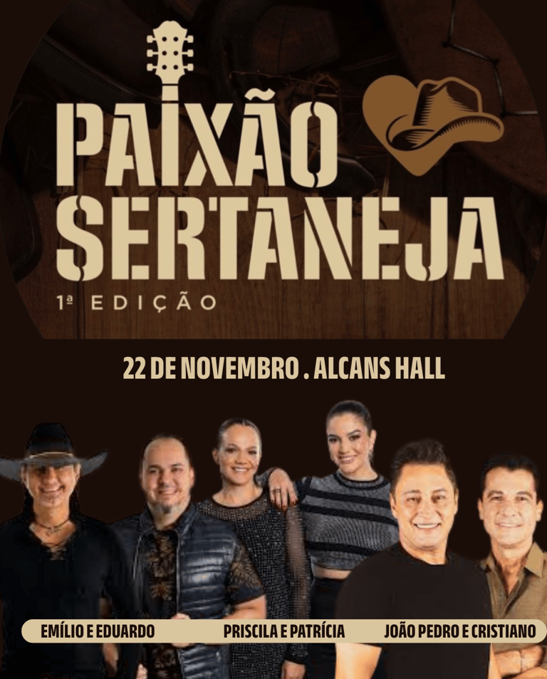 Prepare-se para viver uma noite inesquecível! No dia 22 de novembro, o Alcans Hall, em Ribeirão Preto, recebe a 1ª edição do Paixão Sertaneja – um evento que vai reunir tradição, emoção e a verdadeira essência da música sertaneja.